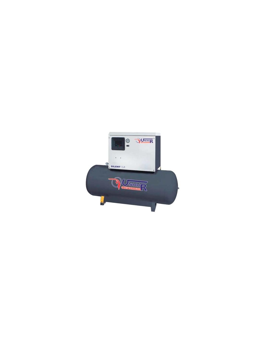 La serie SILENT ha sido diseñada para resolver los problemas de ruido en los centros de trabajo. Están fabricados con los mismos parámetros que los pistones tradicionales (cilindros de hierro fundido, bajas revoluciones, bi-etapa…etc.), añadiendo paneles especiales fono absorbentes, para trabajar entre 66 y 69 dB, panel de control con cuenta-horas, manómetro de presión y testigo de alarmas.