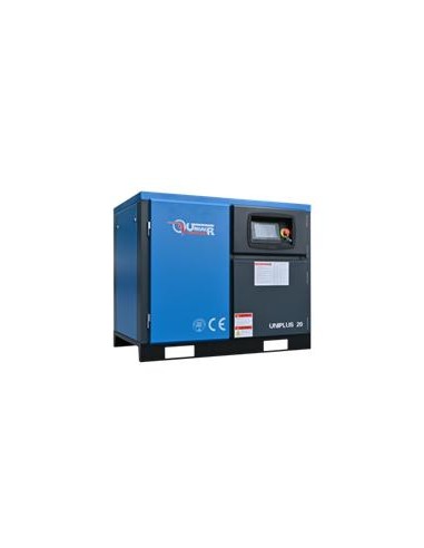 Compresor UNIPLUS+ 5,5 T de alta presión es una solución de alto rendimiento que combina características clave para superar tus expectativas. Con transmisión directa, no hay pérdida de potencia,. Cuenta con espuma aislante de sonido y sistema anti vibraciones. El motor de alta eficiencia y protección IP-55 aseguran un rendimiento fiable. Además, tiene un panel de control fácil de usar. El compresor garantiza un rendimiento excepcional, eficiencia energética y comodidad de uso..