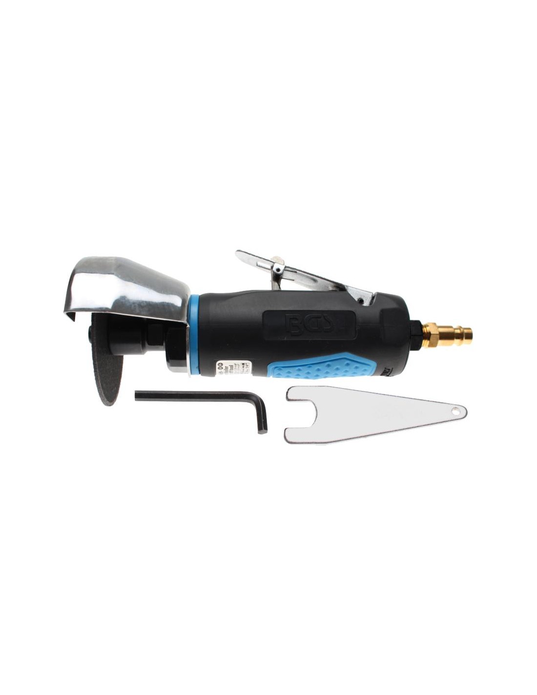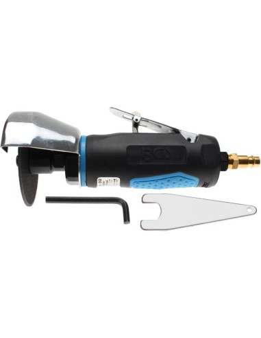 Muy práctico por su diseño corto. Adaptador para discos de corte de Ø 75 mm, agujero 10 mm, espesor 1,5 mm. Revoluciones en vacío 20000 rpm. Consumo de aire 127 l/min. Presión de aire necesaria 6,3 bar (90 PSI). Conexión 6,3 mm (1/4""). Manguera recomendada 10 mm (diámetro interior). Dimensiones 185 x 80 mm. Peso 0,78 kg. Peso bruto 981 g.