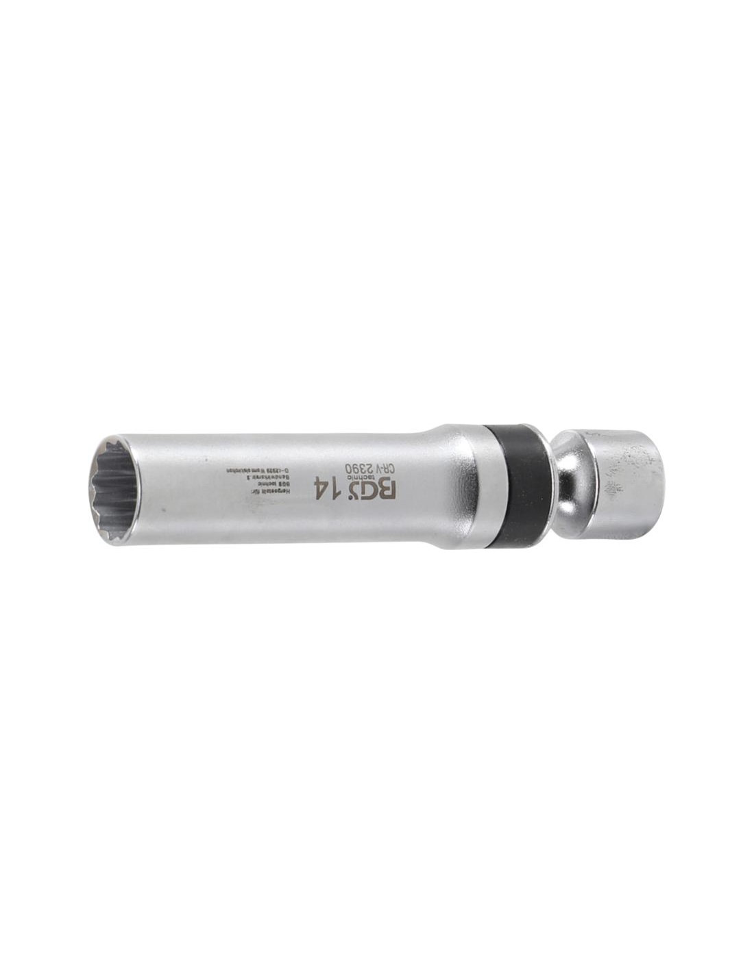 12 caras. Incl. muelle de sujeción para bujías de encendido extra largas (por ej. en BMW). Peso bruto 128 g. Longitud 100 mm. Material Acero al cromo vanadio Acabado de superficie Cromado, mate.