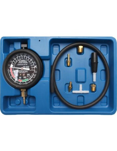Para probar bombas mecánicas de combustible, tuberías de combustible y para comprobar fugas en válvulas de mariposa, colectores de admisión, mangueras de vacío, etc. Manómetro de presión/vacío con gancho de suspensión y protección anti golpes de goma, Ø 89 mm. Incluye manguera flexible y adaptador. Rango de medición de vacío 0 - 25 in HG (0 - 70 cm HG). Rango de medición de presión 0 - 0.7 kg/cm² (0 - 10 psig). Peso bruto 822 g.