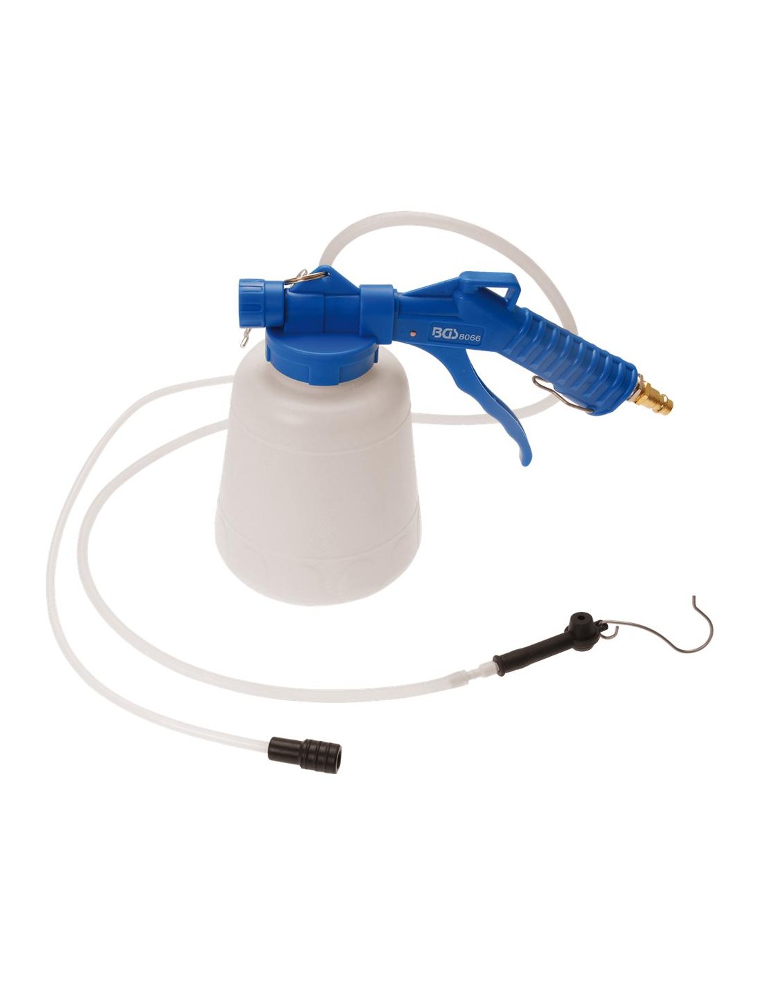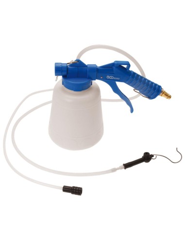 Manejo unipersonal, también puede utilizarse en sistemas de embrague. Incluye una manguera para la aspiración de líquidos. Presión de funcionamiento 6-12 bar. Anchura 135 mm. Peso bruto 695 g. Capacidad 1000 ml. Altura 192 mm. Longitud 225 mm.