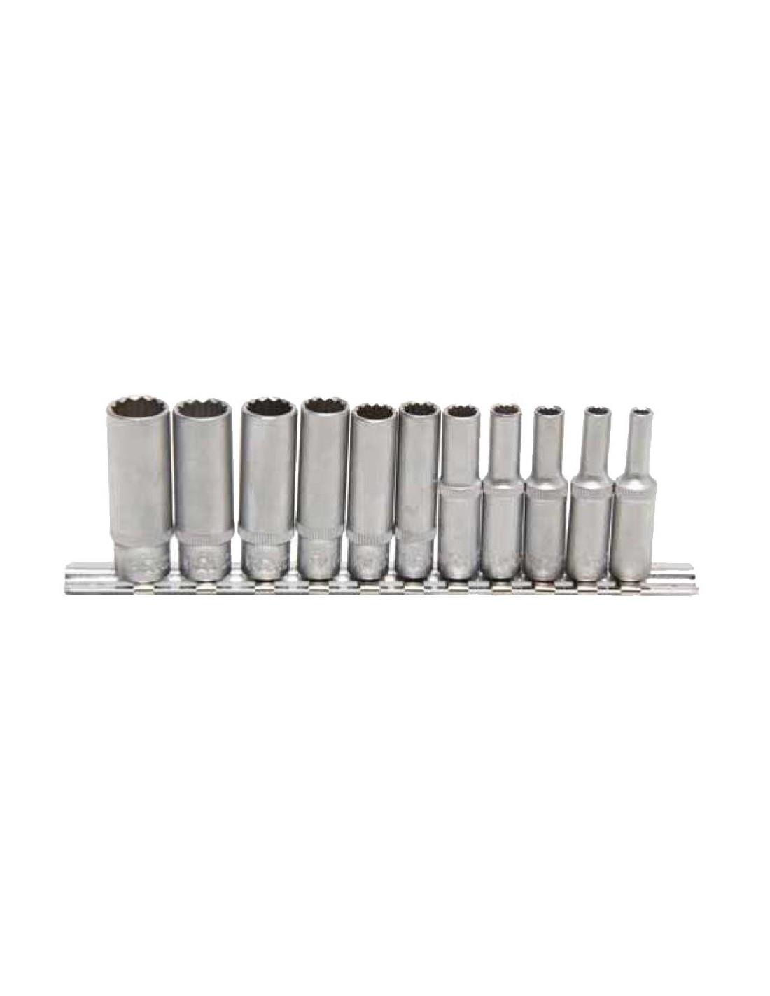 En rail metálico. Estriado. Perfil de transmisión Cuadrado interno. Perfil de funcionamiento Dodecágono. Peso bruto 374 g. Material Acero al cromo vanadio. Tamaño del perfil de accionamiento 1, sistema métrico 6,3 mm. Acabado de superficie Cromado, mate. Tamaño del perfil de accionamiento, sistema anglosajón 1/4".