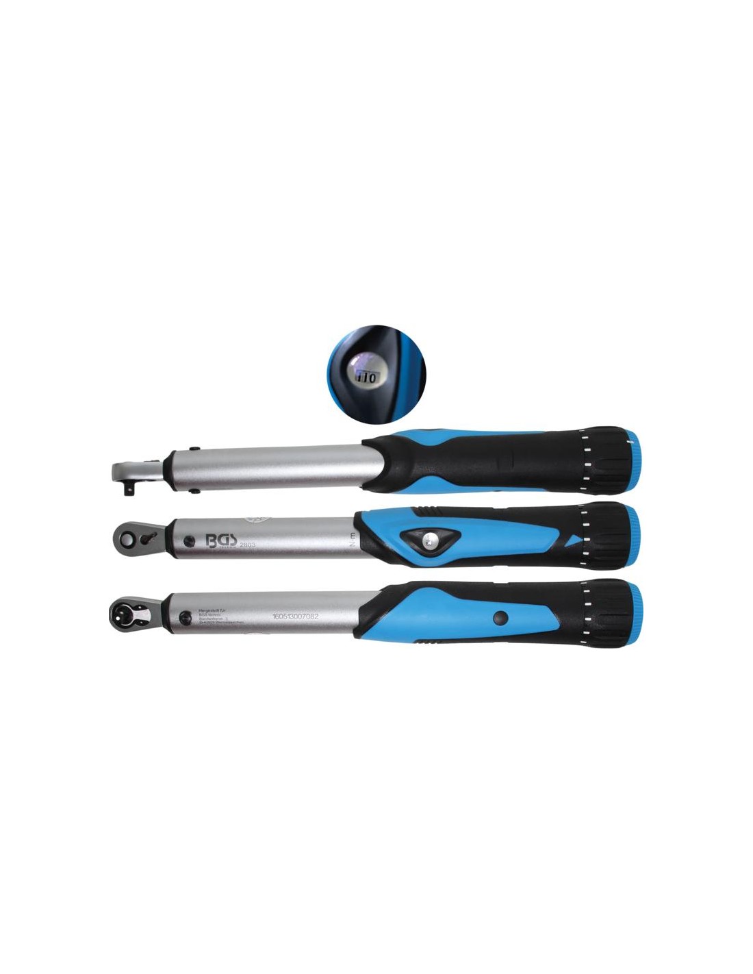 Mecanismo de carraca, reversible, 48 dientes. Apropiado para apretar uniones atornilladas con rosca a derecha. Ventana para valor del par de apriete. Precisión: +/- 4%, incl. certificado de verificación. Rango de par de apriete: 60 - 340 Nm. Escala fina: 1,0 Nm. Peso bruto 1876 g. Longitud 604 mm.