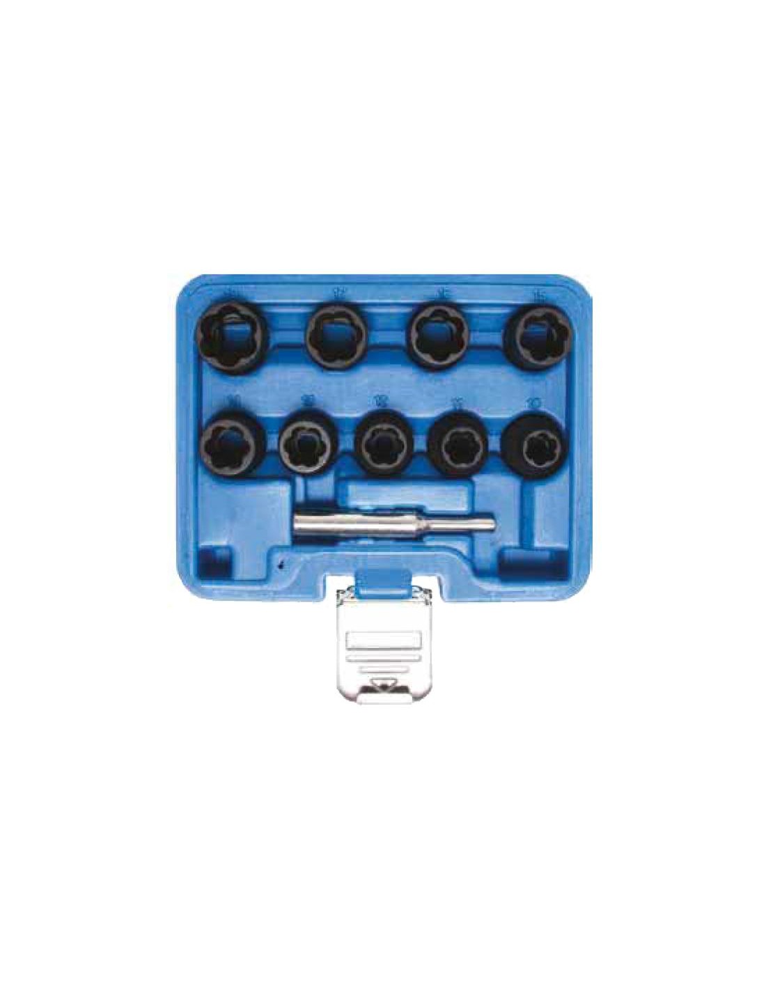 Juego de llaves de vaso de perfil en espiral/ extractores de tornillos | entrada 12,5 mm (1/2") | 10 - 19 mm | 10 pzs