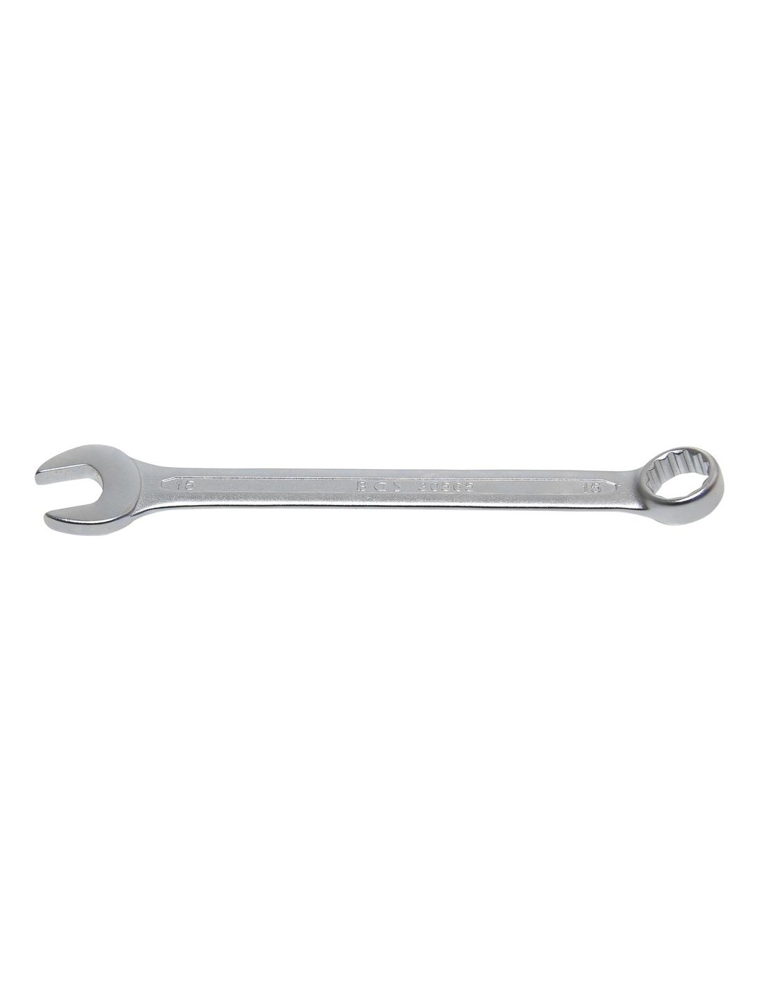 Forjado en frío. Cromado mate. Extremo del anillo en ángulo de 15°. Salida del anillo: 12 caras. Anchura de llave 1 15 mm. Anchura de llave 2 15 mm. Longitud 190 mm. Material Acero al cromo vanadio. Peso bruto 100 g.