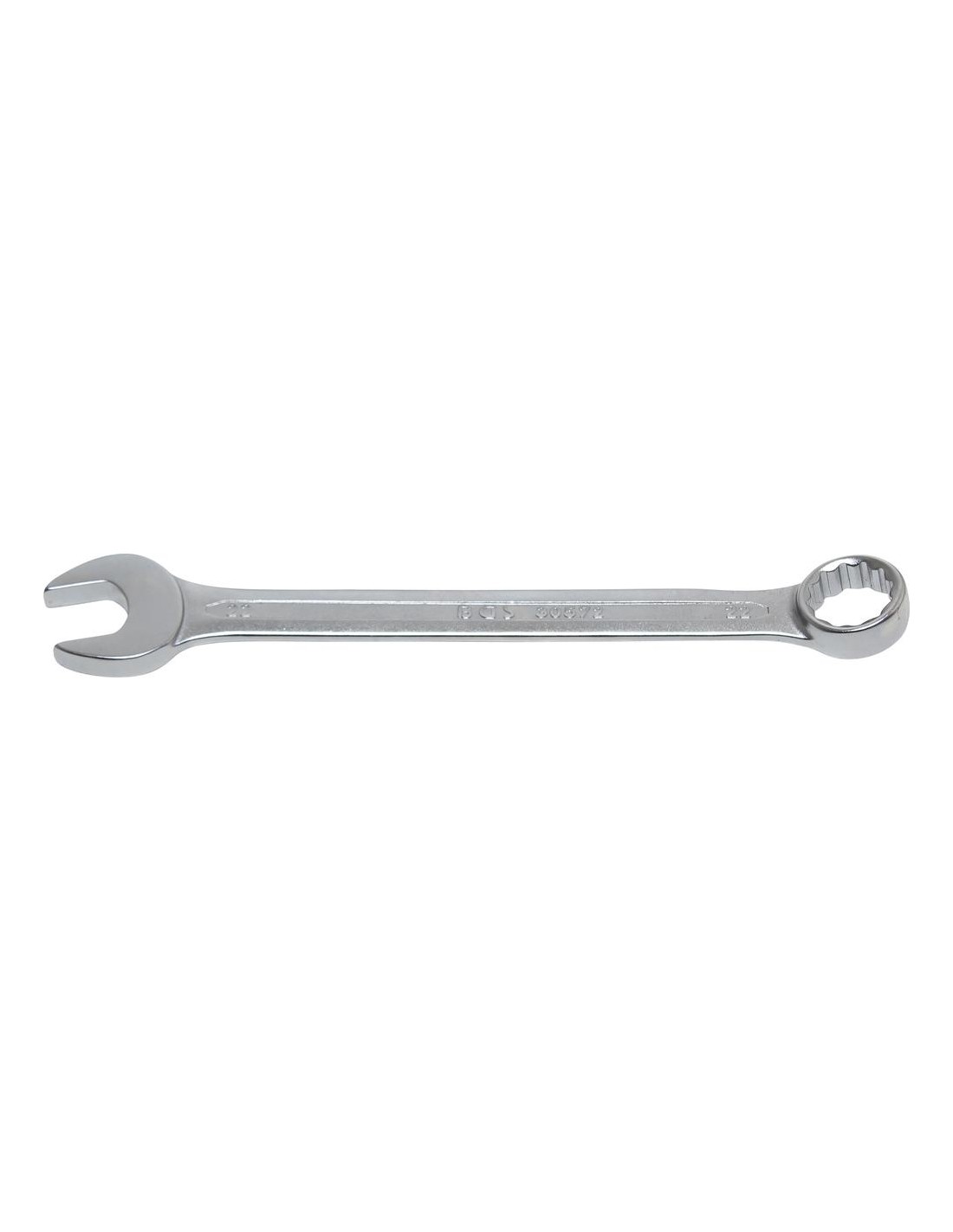 Forjado en frío. Cromado mate. Extremo del anillo en ángulo de 15°. Salida del anillo: 12 caras. Peso bruto 275 g. Anchura de llave 1 22 mm. Anchura de llave 2 22 mm. Material Acero al cromo vanadio. Longitud 260 mm.