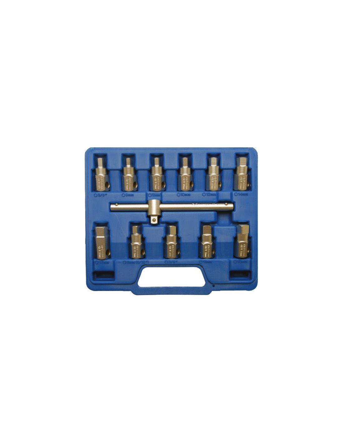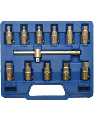 Contenido de suministro: 7 vasos, entrada 10 mm (3/8"), hexágono interior: 8 - 9 - 10 - 12 - 14 - 17 mm - 3/8". 4 vasos, entrada 10 mm (3/8"), cuadrado interior: 8 - 11 - 13 mm - 3/8". 1 mango corredizo. Peso bruto 1124 g.