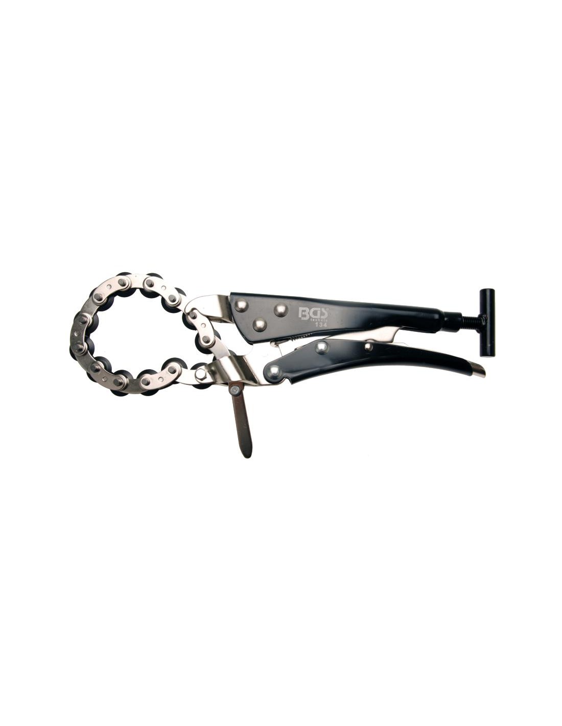 Para cortar tubos de acero, cobre, PVC y aluminio hasta un diámetro de aprox. 85 mm. Reajustable durante el proceso de corte mediante tornillo de mariposa. Peso bruto 818 g. Longitud de cadena 250 mm.