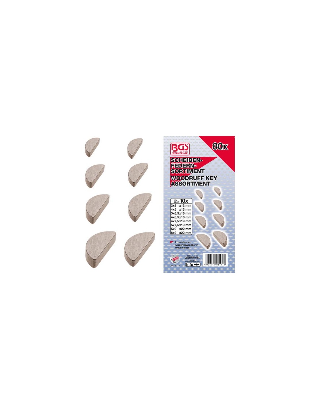 - 10 chavetas embutida en c/u de los siguientes tamaños: