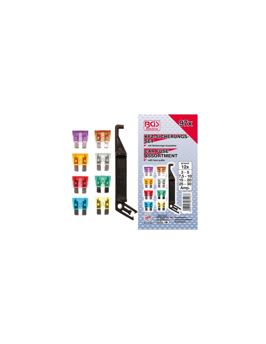 - con código de colores según tamaño de los fusibles