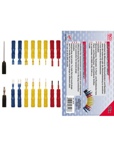 Permite la medición en los conectores y componentes sin dañar el aislamiento o la conexión de enchufe. Conexiones de 4 mm para conectores tipo banana. Peso bruto 118 g.