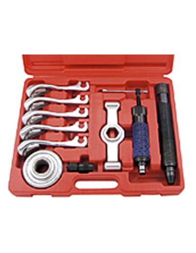 Para expresar los ejes de la hélice o quitar el cubo de la ruedarobustos extractores para automóviles, furgonetas y utilitarios con diámetro del círculo de agujeros de 125 - 215 mmespecialmente adecuado para ejes pegados u oxidadosfuerza de presión del cilindro hidráulico de 10 t, éste puede ser sustituido por un husillo de impacto incluido.