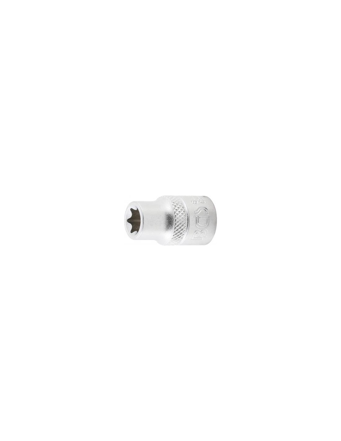 Estriado. Perfil de accionamiento: Perfil en E. Perfil de transmisión Cuadrado interno. Tamaño del perfil de accionamiento, sistema anglosajón 3/8". Tamaño del perfil de accionamiento, sistema métrico 10 mm. Peso bruto 32 g. Material Acero al cromo vanadio. Tratamiento superficial Cromado. Anchura de llave E10.