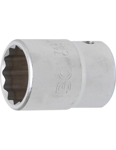 Entrecaras 27 mm. Material Acero al cromo vanadio. Perfil de transmisión Cuadrado interno. Tamaño del perfil de accionamiento, sistema anglosajón 3/4". Perfil de funcionamiento Dodecágono. Acabado de superficie Cromado, mate. Peso bruto 244 g. Tamaño del perfil de accionamiento 1, sistema métrico 20 mm.